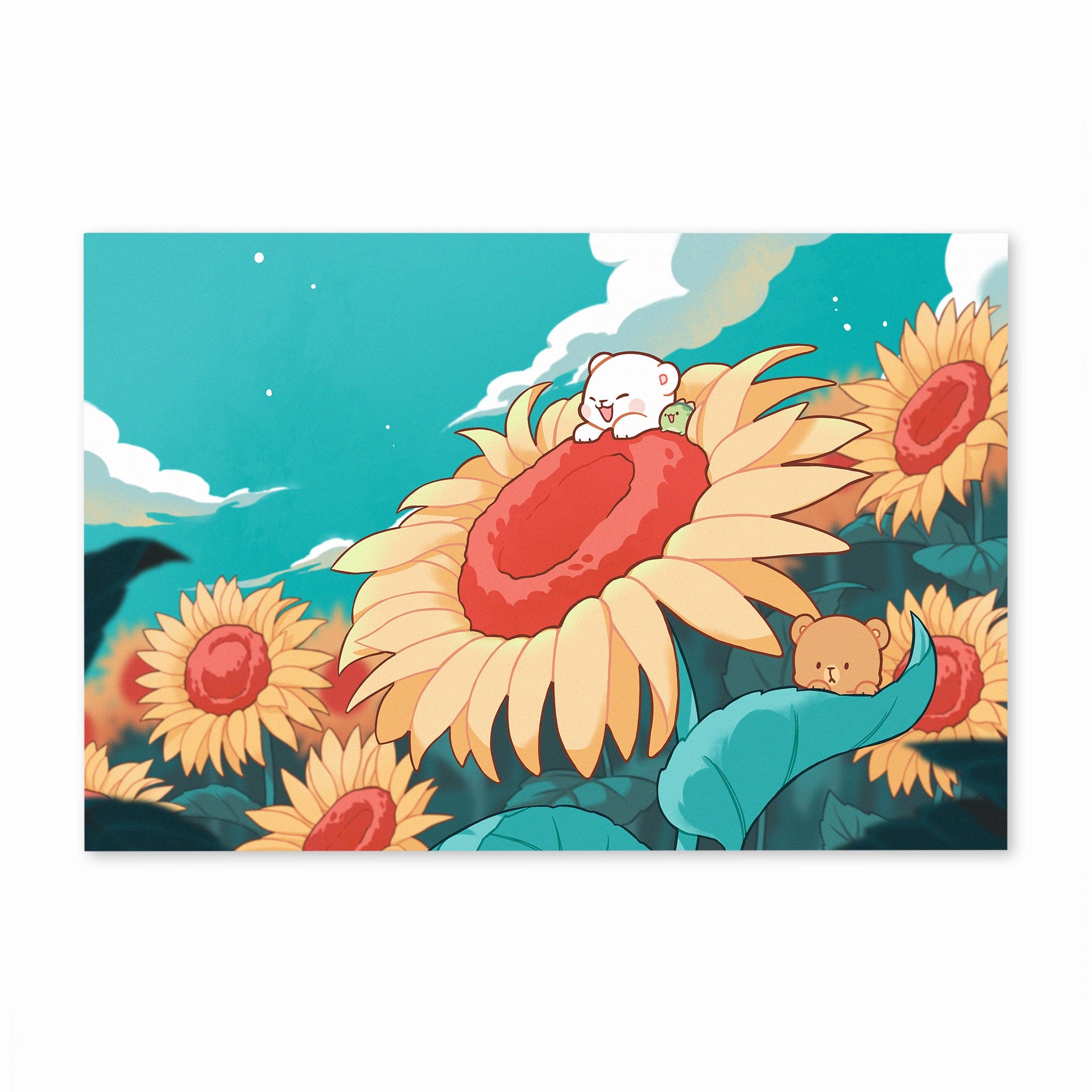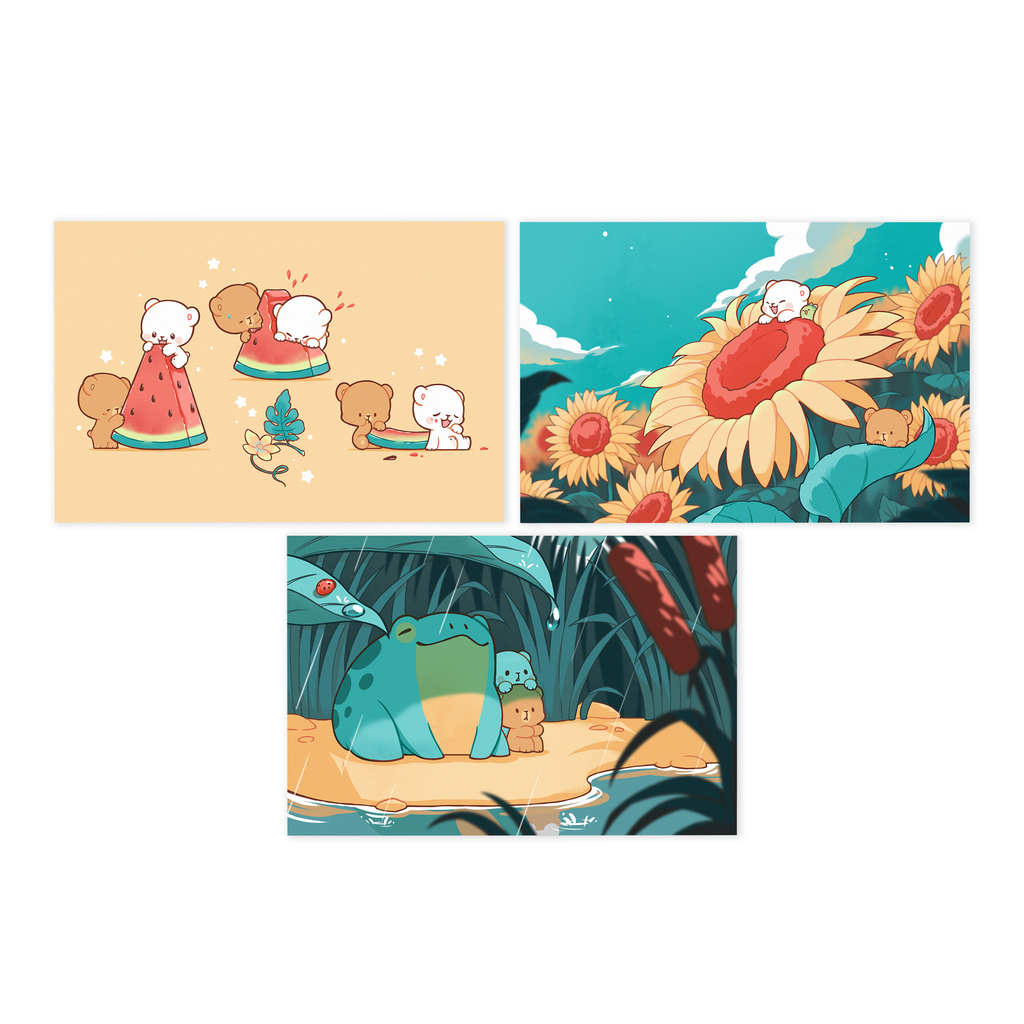 - Includes 3 post cards: Sunflower, Pond and Watermelon